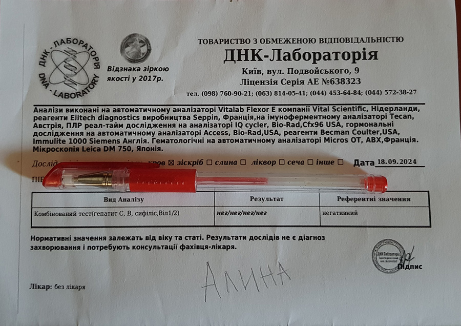 Translation: HIV, hepatitis, syphilis negative (18.09.2024)