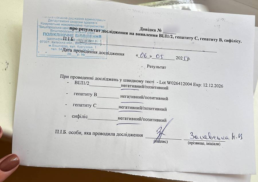 Translation: HIV, hepatitis, syphilis negative (06.08.2025)