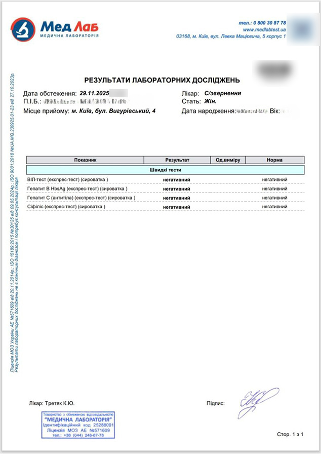 Translation: HIV, hepatitis, syphilis negative (29.11.2025)