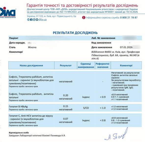 Translation: hepatitis, syphilis negative (06.01.2026)