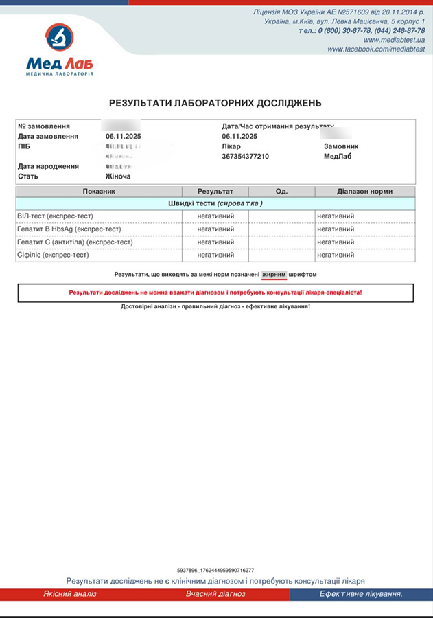 Translation: HIV, hepatitis, syphilis negative (06.11.2025)