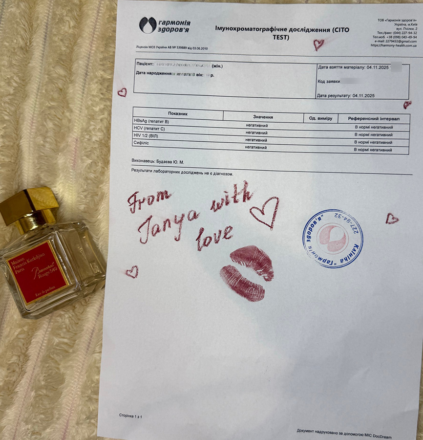 Translation: HIV, hepatitis, syphilis negative (04.11.2025)