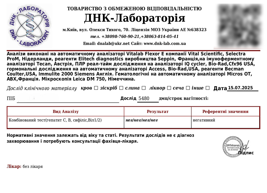 Translation: HIV, hepatitis, syphilis negative (15.07.2025)